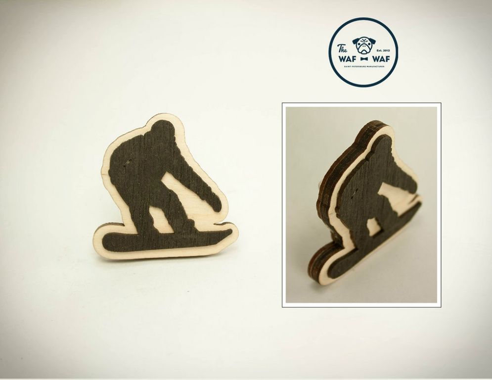 Значок сноубордист - изготовлен из дерева, крепится при помощи булавки.